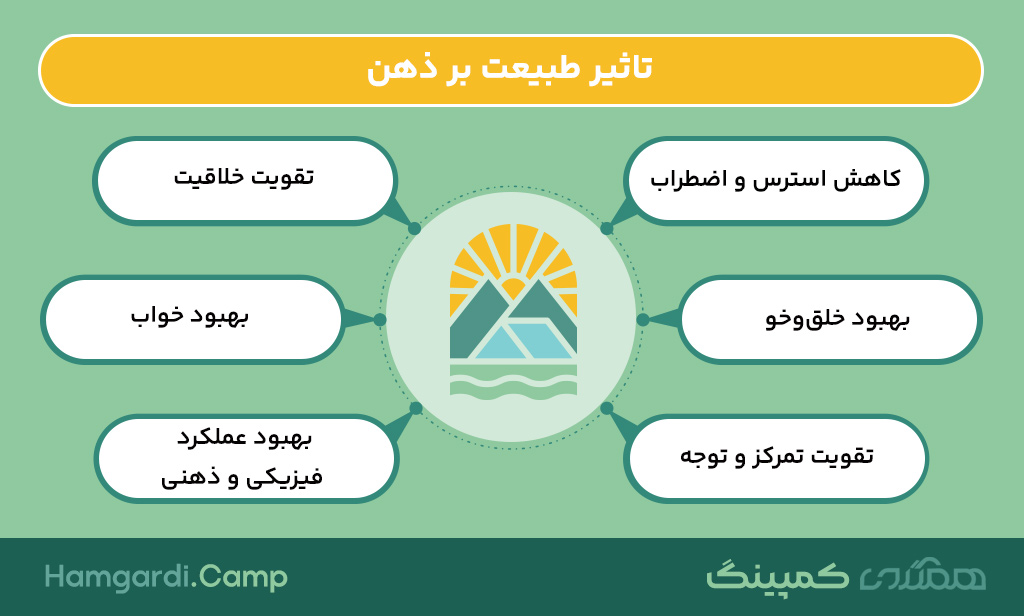 تاثیر طبیعت بر ذهن انسان بیپایان و گسترده است. طبیعت میتواند به کاهش استرس، بهبود خلقوخو، تقویت تمرکز، افزایش خلاقیت و حل مسائل کمک کند. از آنجا که انسانها بهطور طبیعی به محیطهای طبیعی وابسته هستند، ایجاد فرصتی برای ارتباط با طبیعت و استفاده از فواید آن میتواند بهبود چشمگیری در کیفیت زندگی افراد ایجاد کند. بنابراین، گذراندن زمان در طبیعت میتواند یک راهکار موثر برای تقویت ذهن و ارتقای سلامت روانی باشد.